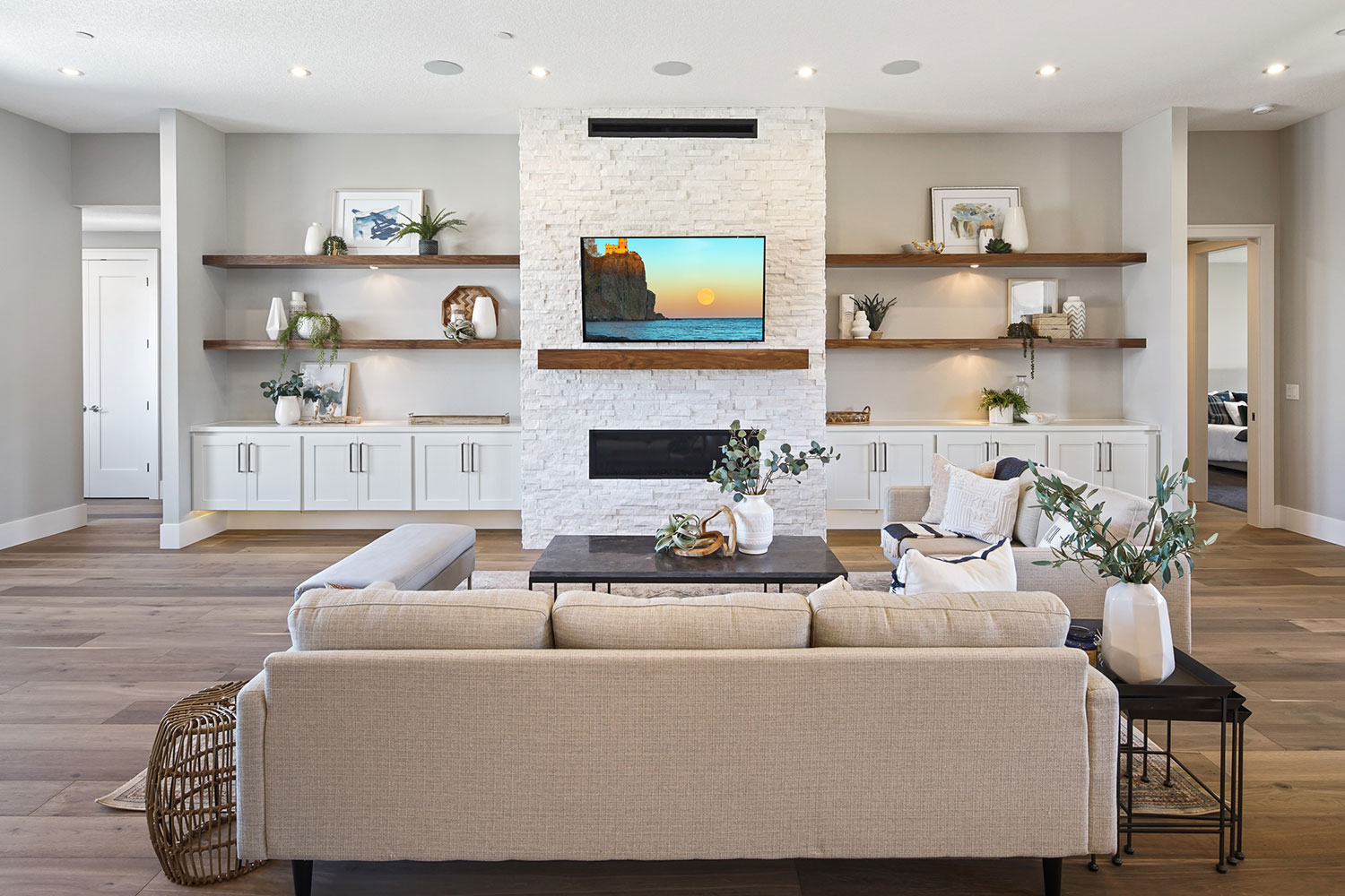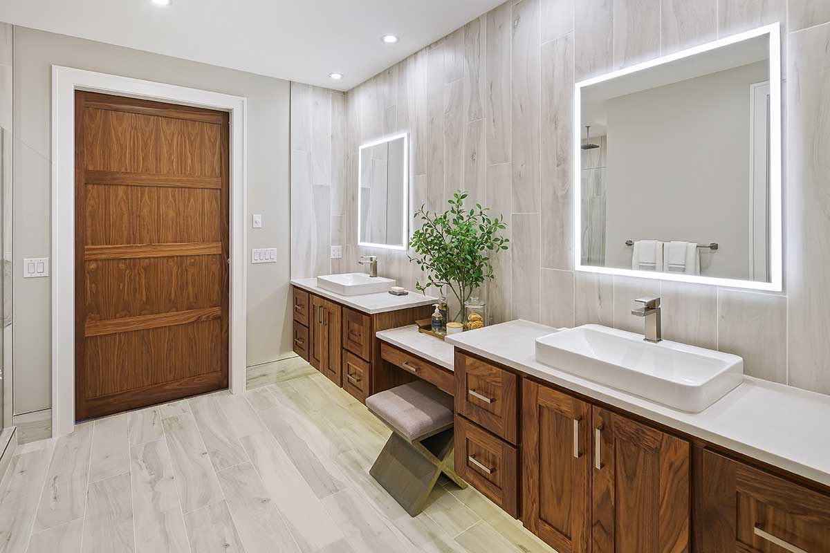 The primary suite is a private sanctuary, complete with a spa-style bathroom and walk-in closet. On the opposite side of the home, a separate guest suite with its own bath offers flexibility for visiting family or long-term guests. Every room was designed to serve a purpose while still contributing to the home’s overall sense of balance and ease.